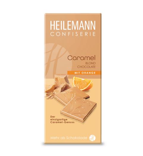 Zucker, Kakaobutter, Vollmilchpulver, [Karamellpulver (9,7%): Magermilchpulver, Molkenpulver, Zucker, Milchfett, natürliches Vanille-Aroma], Magermilchpulver, [Orangengranulat (2,5%): Zucker, Orangenpulpe, Äpfel, Ananasfasern, Säuerungsmittel: Zitronensäure; Geliermittel: Natriumalginat; Stabilisaor: Calciumphosphate; natürliches Orangenaroma], karamellisierter Zucker, Kakaomasse, Emulgator: Soja-Lecithine, Salz.