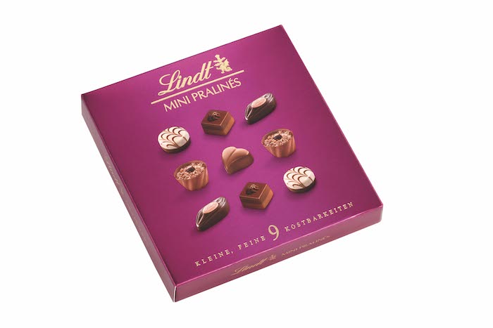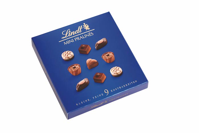 Zucker, Kakaomasse, Vollmilchpulver, Kakaobutter, Haselnüsse, Butterreinfett, Glukosesirup, Magermilchpulver, Marc de Champagne, Kondensmilch, Milchzucker, Sahnepulver, Mandeln, Emulgator (Soja- und Sonnenblumenlecithin), Weizenmehl, natürliche Aromen, Traubenzucker, Sahne, Aromen, Gerstenmalzextrakt, Salz, Zitronensaftkonzentrat, Invertzucker, Kokosfett, Karamellzuckersirup.