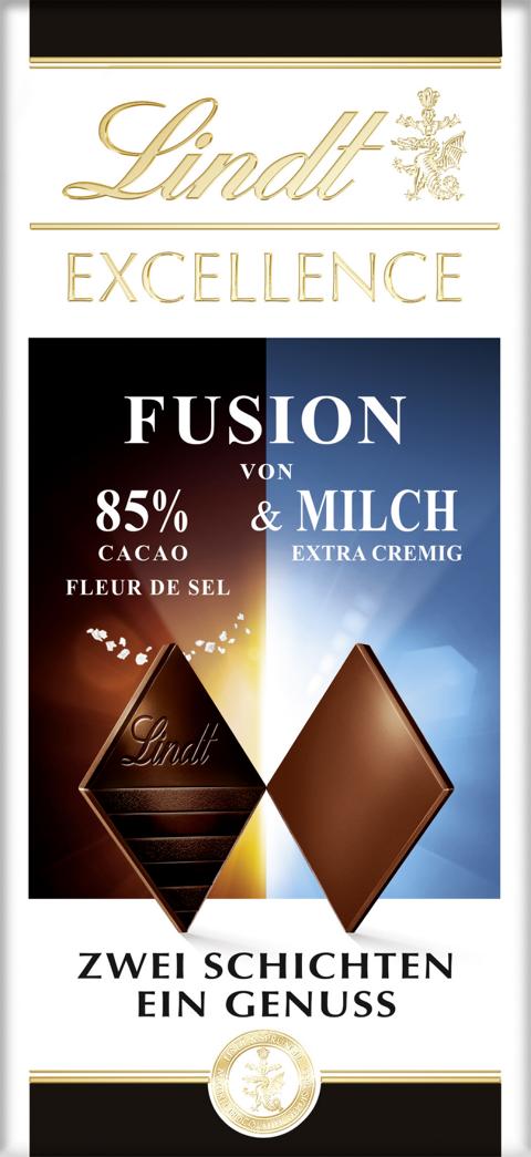 Zucker, Kakaomasse, Zucker, Kakaobutter, fettarmes Kakaopulver, Vollmilchpulver, Rohrzucker, Milchzucker, Magermilchpulver, Meersalz (0,2%); Gerstenmalzextrakt, Emulgator (Sojalecithin), Aroma, Vanille.
