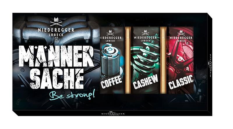Mandeln 36%, Zartbitter-Schokolade 29% (Kakaomasse, Zucker, Kakaobutter, Vollmilchpulver, Emulgator: Soja-Lecitine, Vanille-Extrakt), Zucker, Karamell 5,1% (Zucker, gezuckerte Kondensmilch, Glukosesirup, Fondant (Zucker, Glukosesirup, Wasser) Kokosöl, Butter, Speisesalz, natürliches Aroma), Invertzuckersirup, Alkohol, stark entölter Kakao (0,8%), natürliche Aromen, Natürliches Kakao-Aroma