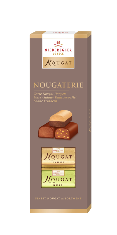 Zucker, Haselnüsse (25%); Kakaobutter, Sahnepulver, Vollmilch-Schokolade [(7,5%) (Zucker, Kakaobutter, Vollmilchpulver, Kakaomasse, Emulgator: Soja-Lecithine, Vanille-Extrakt)]; Vollmilchpulver, Kakaomasse, Schokoladensplitter (Zucker, Kakaomasse, Kakaobutter, Emulgator: Soja-Lecithine); Krokantierter Kakao (Kakaonips, Zucker); Milchzucker, Emulgatoren (Soja-, Sonnenblumen-Lecithine); Karamell, Vanille-Extrakt, Vanillepulver